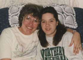 | My son-in-law Chris, my granddaughter Cassie, my Mom Esther, and me | |