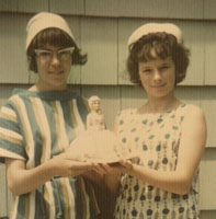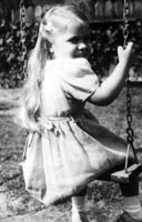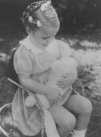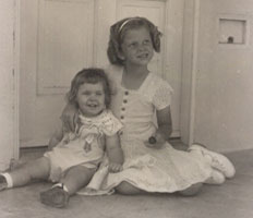 | Marji and me around 1948 (Mom had crocheted Marji's dress) | |
